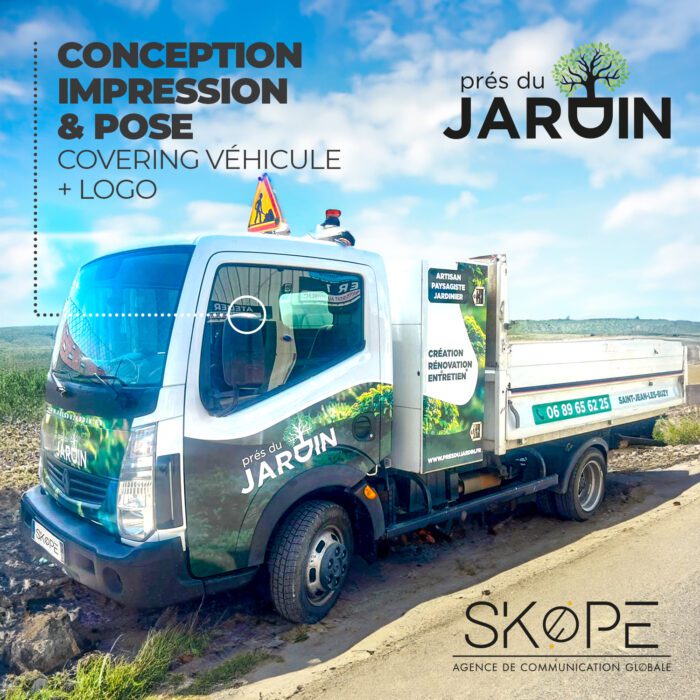 Nous sommes fiers de vous présenter notre dernier projet pour « 𝗣𝗿𝗲́𝘀 𝗱𝘂 𝗝𝗮𝗿𝗱𝗶𝗻 » ! Non seulement nous avons conçu et posé un covering personnalisé sur leur camionnette, mais nous avons également eu le plaisir de créer leur nouveau logo. 🚚🌼🎨