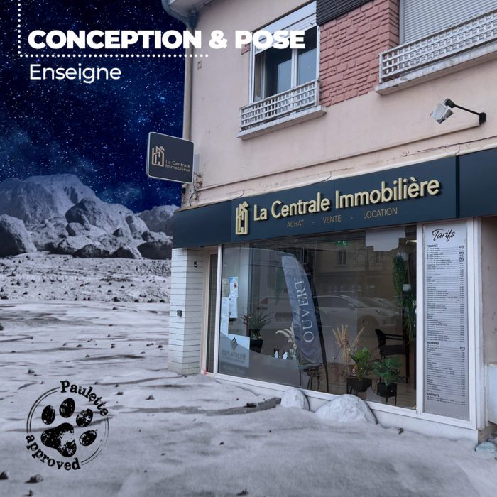 Nous sommes ravis de vous présenter notre tout dernier projet pour « La Centrale Immobilière » : la création et l’installation de leur nouvelle enseigne en aluminium avec lettres en 3D ! Un véritable travail de précision et de design, conçu pour capter l’attention et sublimer l’entrée de cette agence immobilière de renom.