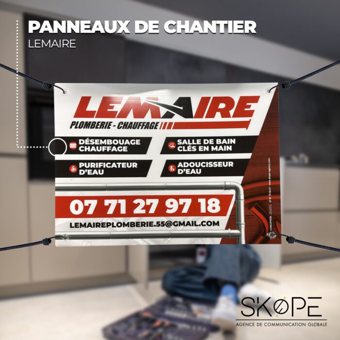 Nous sommes ravis de vous présenter les panneaux de chantier que nous avons réalisés pour @lemaireplomberie_chauffage. Ce support met en avant ses services, allant du désembouage au traitement de l’eau, en passant par la création de salles de bain clés en main. 🚿🔥